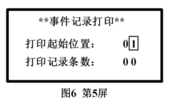 在第2屏下選擇“事件記錄打印”,按“ENT鍵”進入圖6所示頁面。