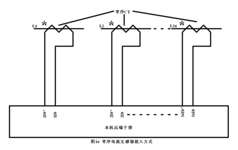• 本機對零序電流互感器的同名端(亦稱極性)要求****一致接入機器。參閱下圖16。
