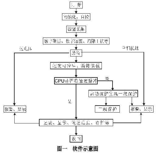 本裝置采用80C196匯編語言編制軟件,軟件主要由監控程序、浮點運算庫、診斷軟件、消諧、記錄等部分構成。由實時監控程序完成電壓檢測、采樣、診斷、消諧、時鐘、鍵盤命令以及顯示和自動保護等任務.簡單框圖如圖一所示: