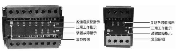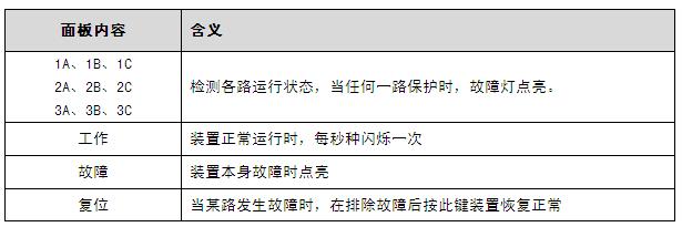 將單相調壓器調到0V位置,輸出端接到某繞組與相應的N端(如1A與1N),接通保護器的AC220V電源,此時,面板上的工作指示燈(綠色)每隔一秒閃爍一次,而其它的指示燈均應不亮,這表示各路保護電路均處于正常的復位狀態。假如有通道紅色指示燈亮,說明相應部分保護狀態未正常復位,需要按復位按鈕予以復位。