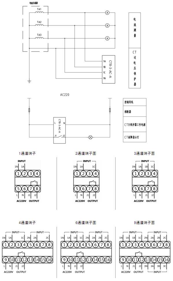 CT過電壓保護器 通道數: 1 2 3 4 6 9 AC:220V(-20%~+10%)